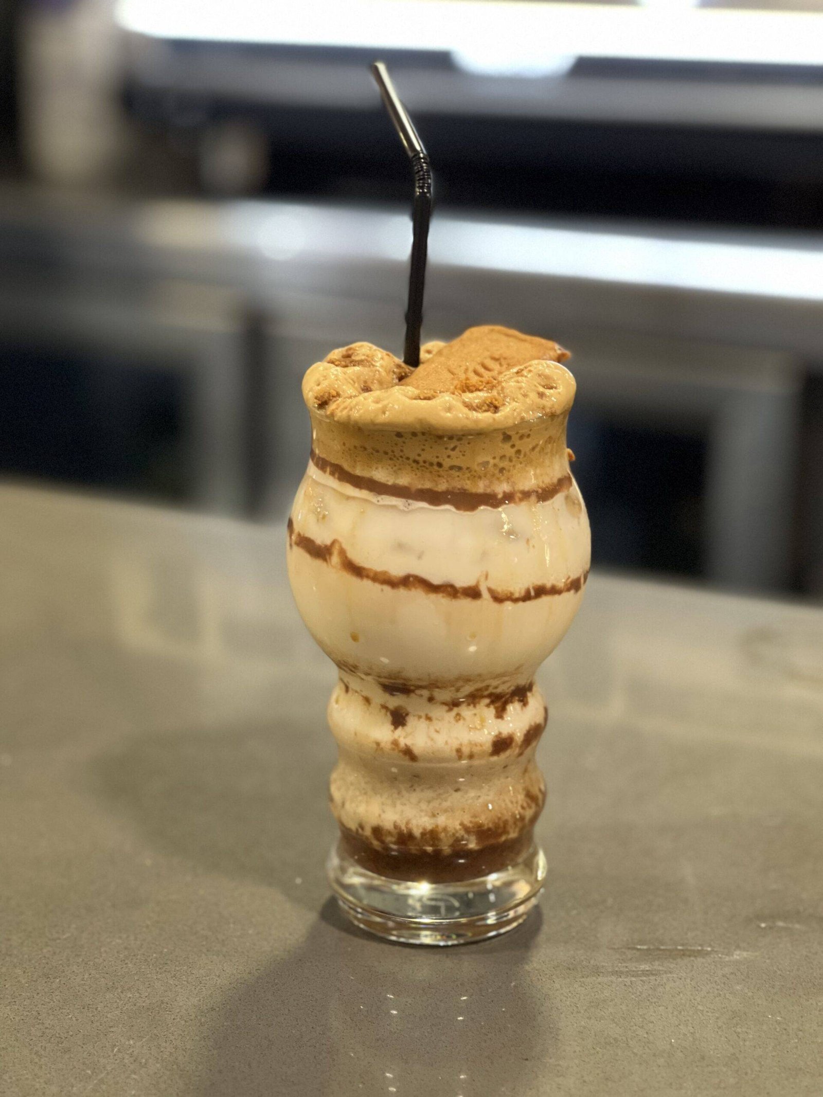 Crema de lotus, leche, hielo, café granulado, agua y miel